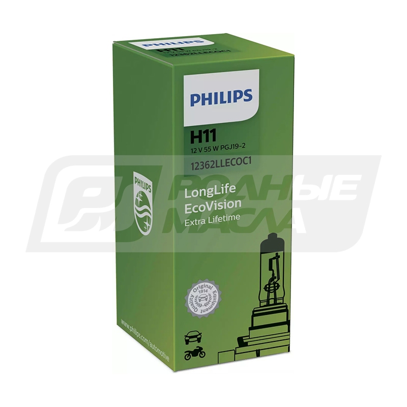 PHILIPS LongLife EcoVision H11 12V 55W PGJ19-2, 1шт